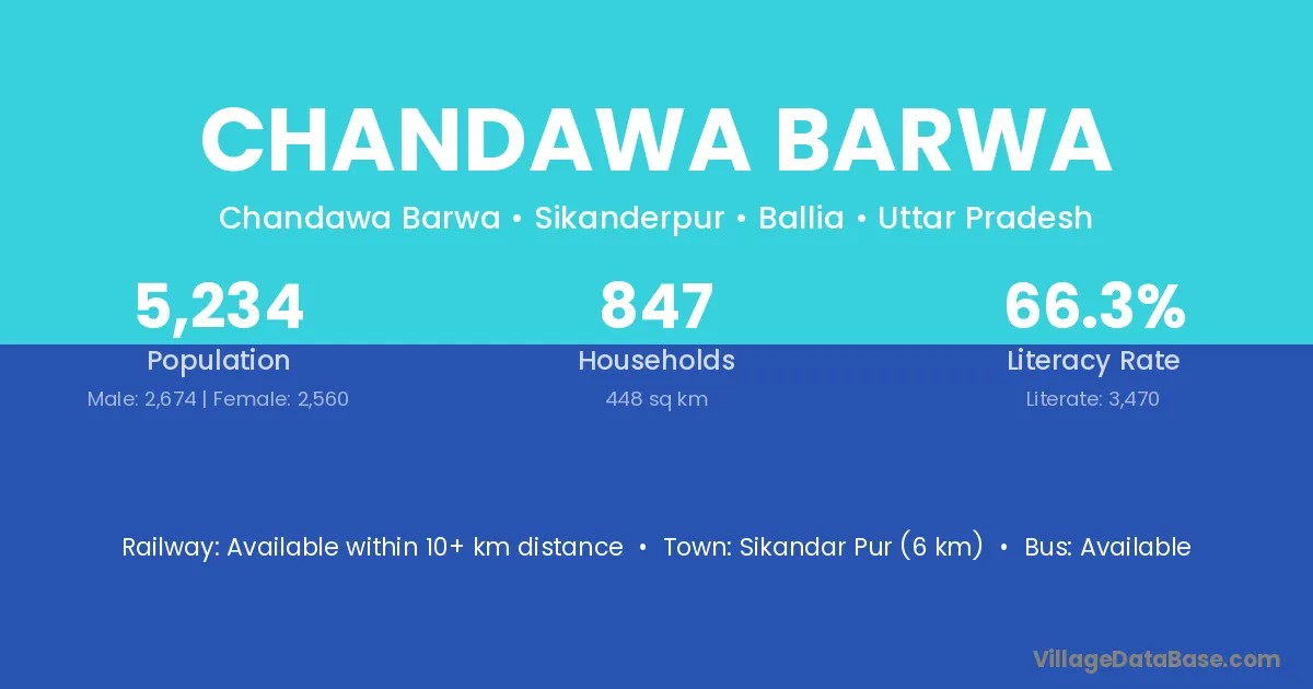 Sikandar Pur (6 km) is the nearest town to Chandawa Barwa village for major economic activities and is located approximately 6 km away.