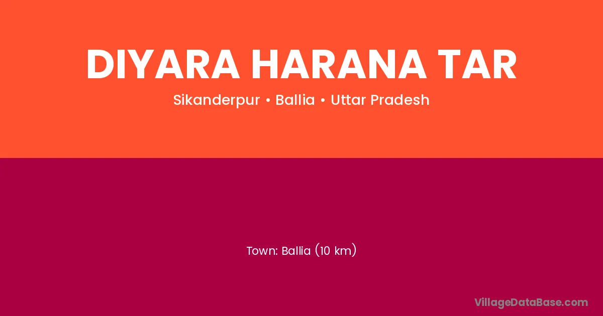 Ballia (10 km) is the nearest town to Diyara Harana Tar village for major economic activities and is located approximately 10 km away.