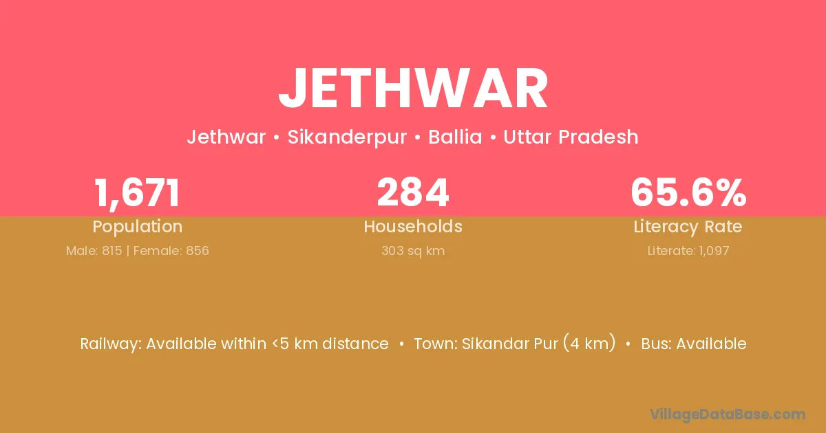 Sikandar Pur (4 km) is the nearest town to Jethwar village for major economic activities and is located approximately 4 km away.