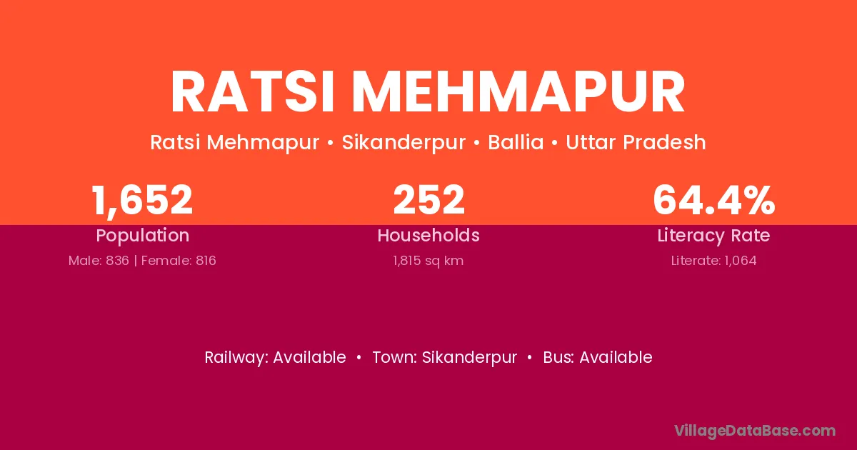 Ratsi Mehmapur village has a total population of 1,652 people, of which 836 are males and 816 are females.