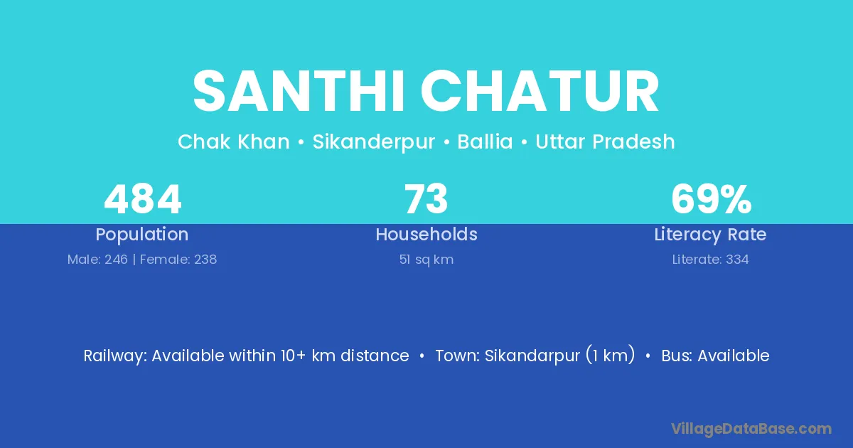 Sikandarpur (1 km) is the nearest town to Santhi Chatur village for major economic activities and is located approximately 1 km away.