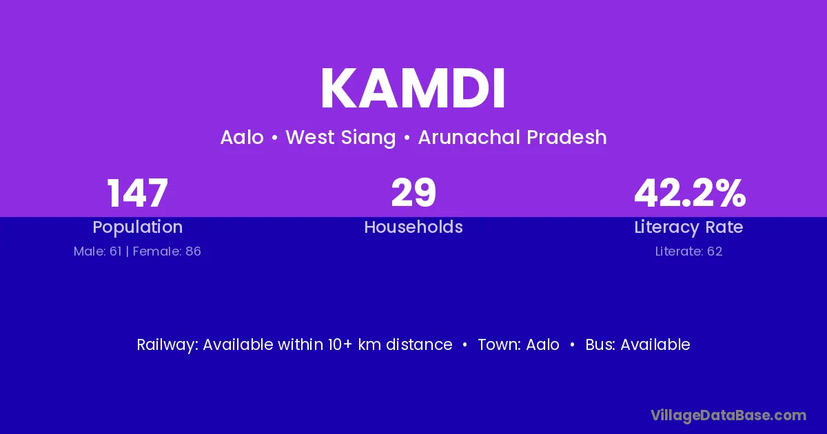 The literacy rate of Kamdi village is 38.49%. Male literacy stands at 48.73% and female literacy at 26.97%.