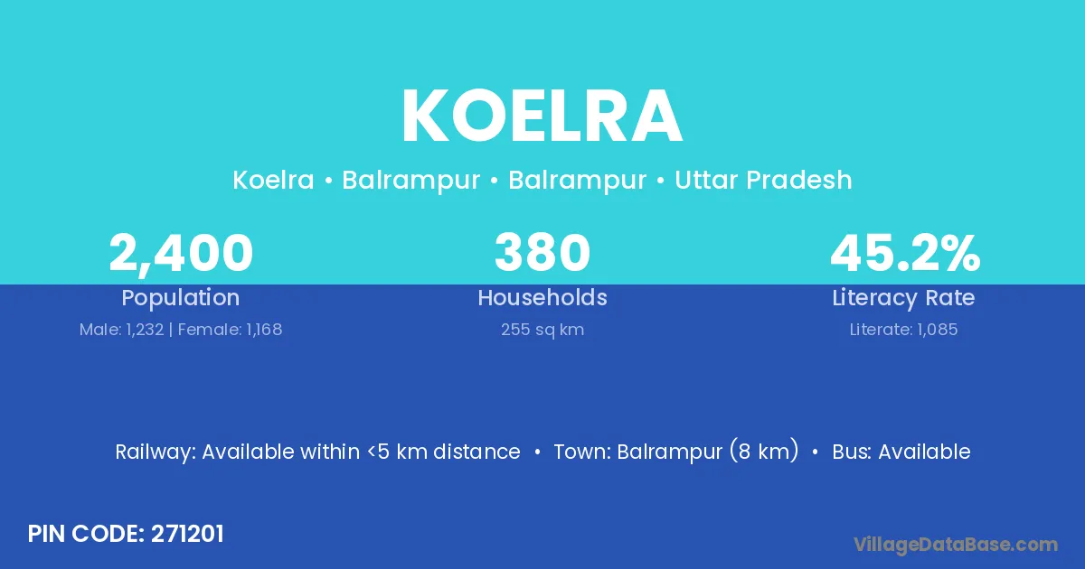 Balrampur (8 km) is the nearest town to Koelra village for major economic activities and is located approximately 8 km away.