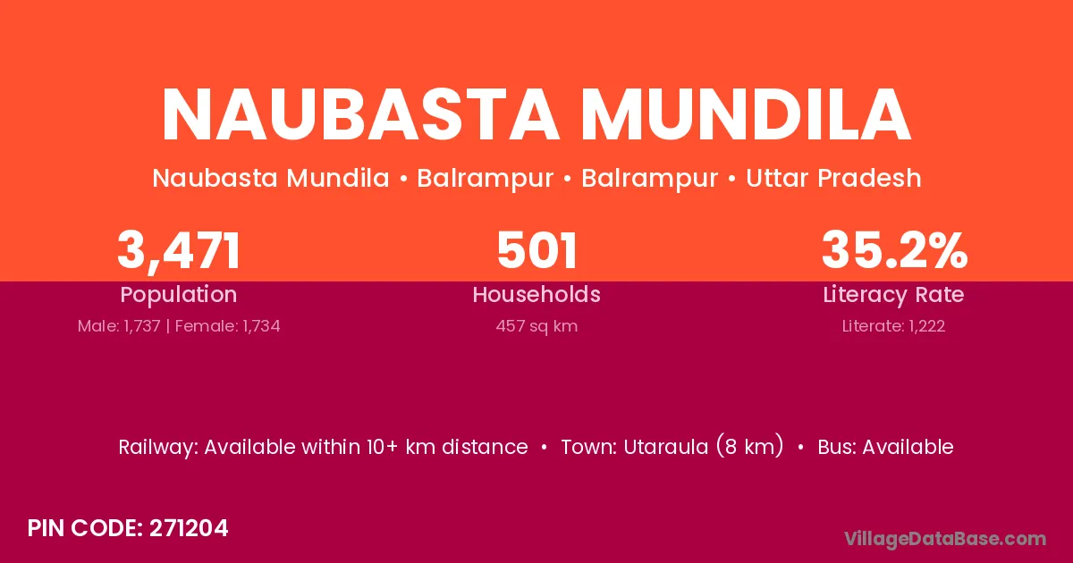 Utaraula (8 km) is the nearest town to Naubasta Mundila village for major economic activities and is located approximately 8 km away.