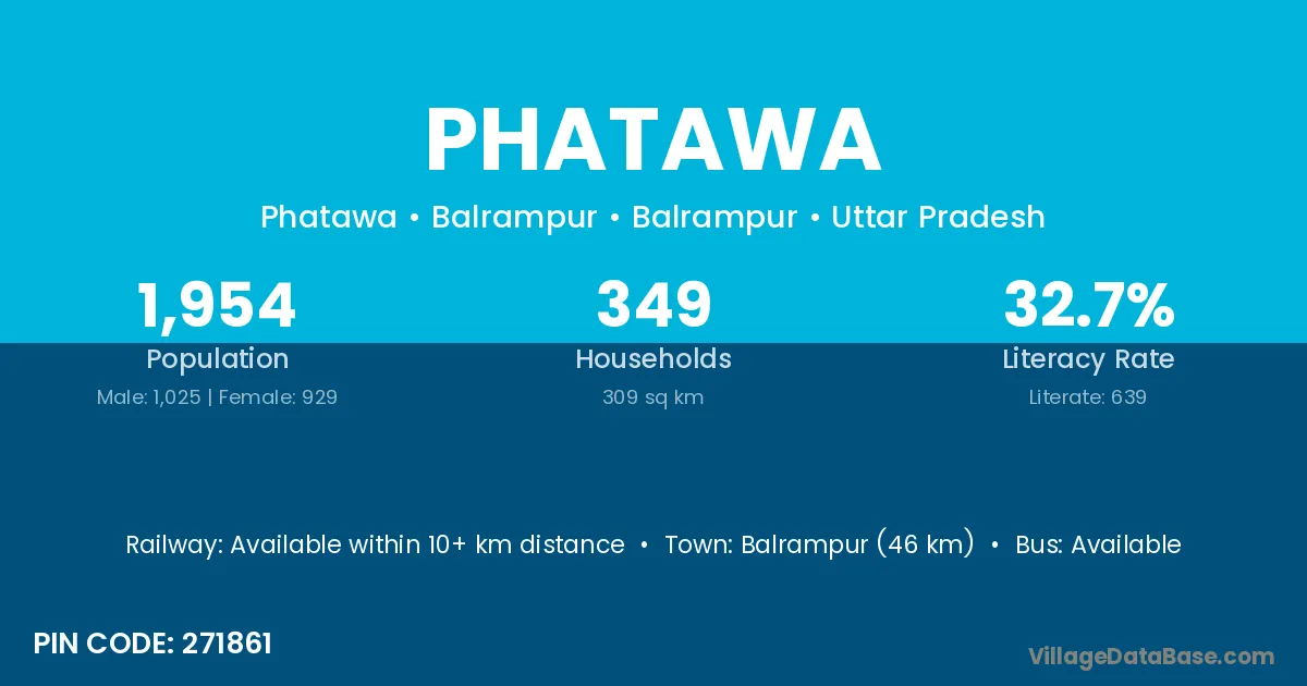 Balrampur (46 km) is the nearest town to Phatawa village for major economic activities and is located approximately 46 km away.