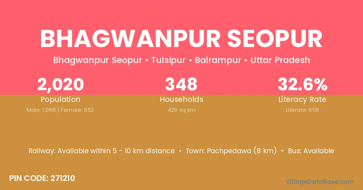 Pachpedawa (8 km) is the nearest town to Bhagwanpur Seopur village for major economic activities and is located approximately 8 km away.