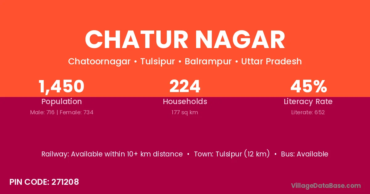 Tulsipur (12 km) is the nearest town to Chatur Nagar village for major economic activities and is located approximately 12 km away.