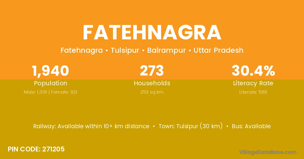 Tulsipur (30 km) is the nearest town to Fatehnagra village for major economic activities and is located approximately 30 km away.