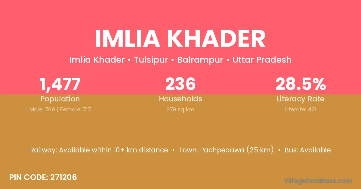 According to Census 2011 information, the village code of Imlia Khader village is 271206.