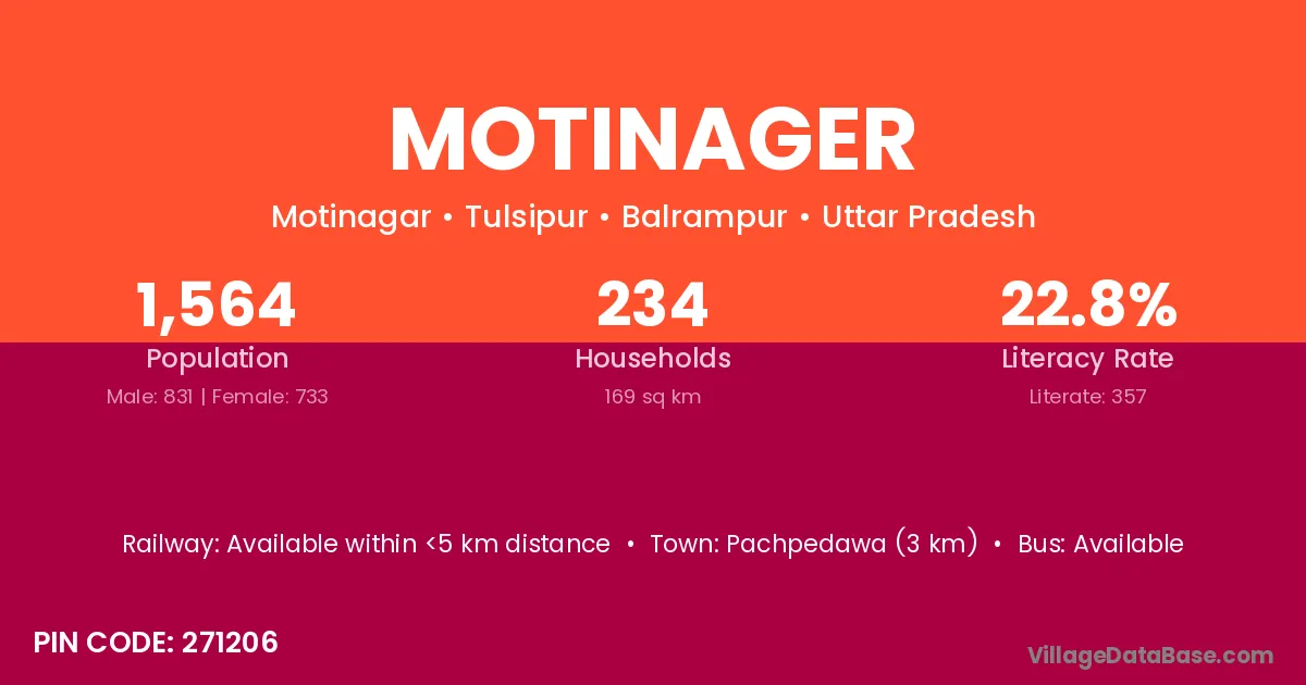 Pachpedawa (3 km) is the nearest town to Motinager village for major economic activities and is located approximately 3 km away.