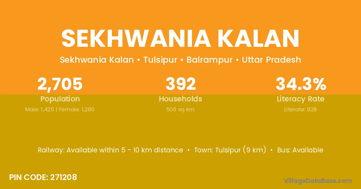 Tulsipur (9 km) is the nearest town to Sekhwania Kalan village for major economic activities and is located approximately 9 km away.