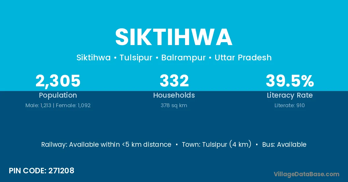 Tulsipur (4 km) is the nearest town to Siktihwa village for major economic activities and is located approximately 4 km away.