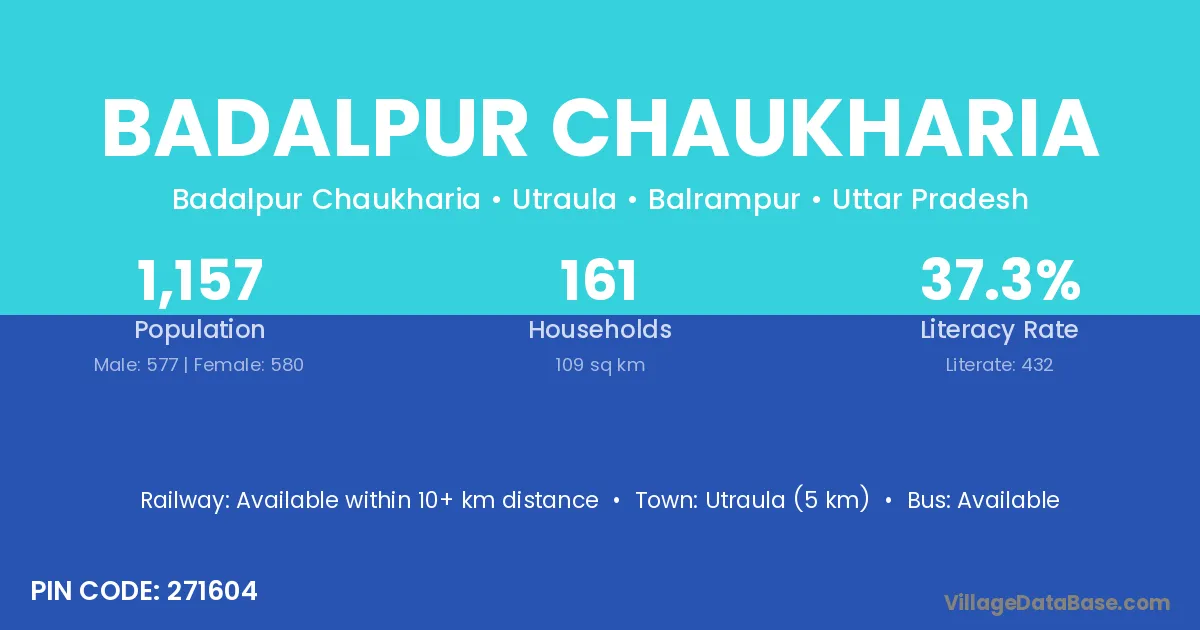 Utraula (5 km) is the nearest town to Badalpur Chaukharia village for major economic activities and is located approximately 5 km away.