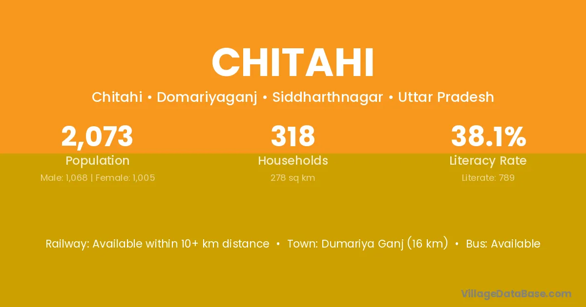 Utraula (10 km) is the nearest town to Chitahi village for major economic activities and is located approximately 10 km away.