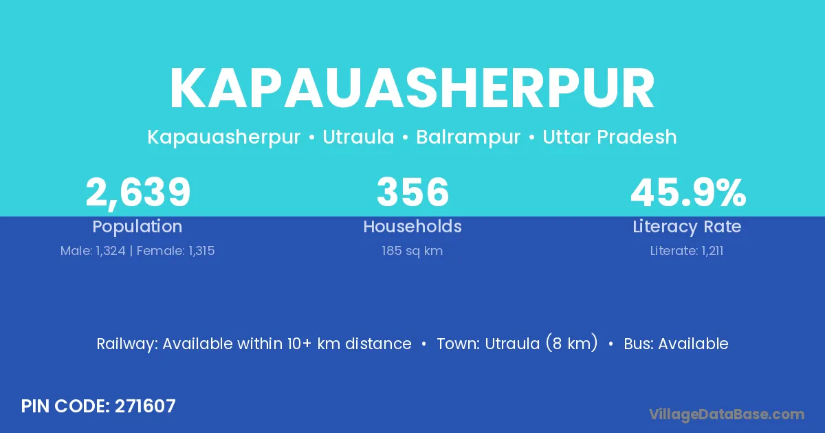 Utraula (8 km) is the nearest town to Kapauasherpur village for major economic activities and is located approximately 8 km away.