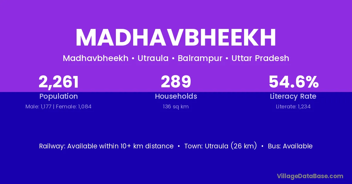 Utraula (26 km) is the nearest town to Madhavbheekh village for major economic activities and is located approximately 26 km away.
