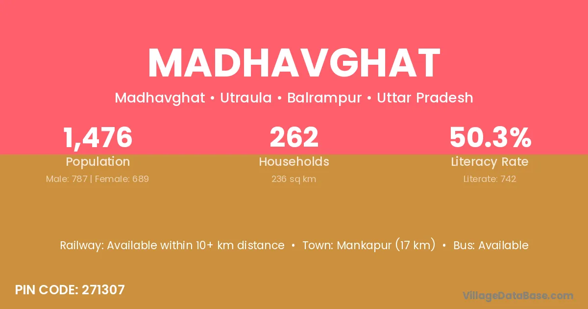 Mankapur (17 km) is the nearest town to Madhavghat village for major economic activities and is located approximately 17 km away.