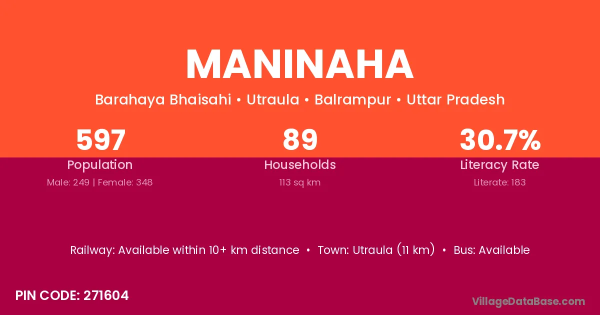 Utraula (11 km) is the nearest town to Maninaha village for major economic activities and is located approximately 11 km away.