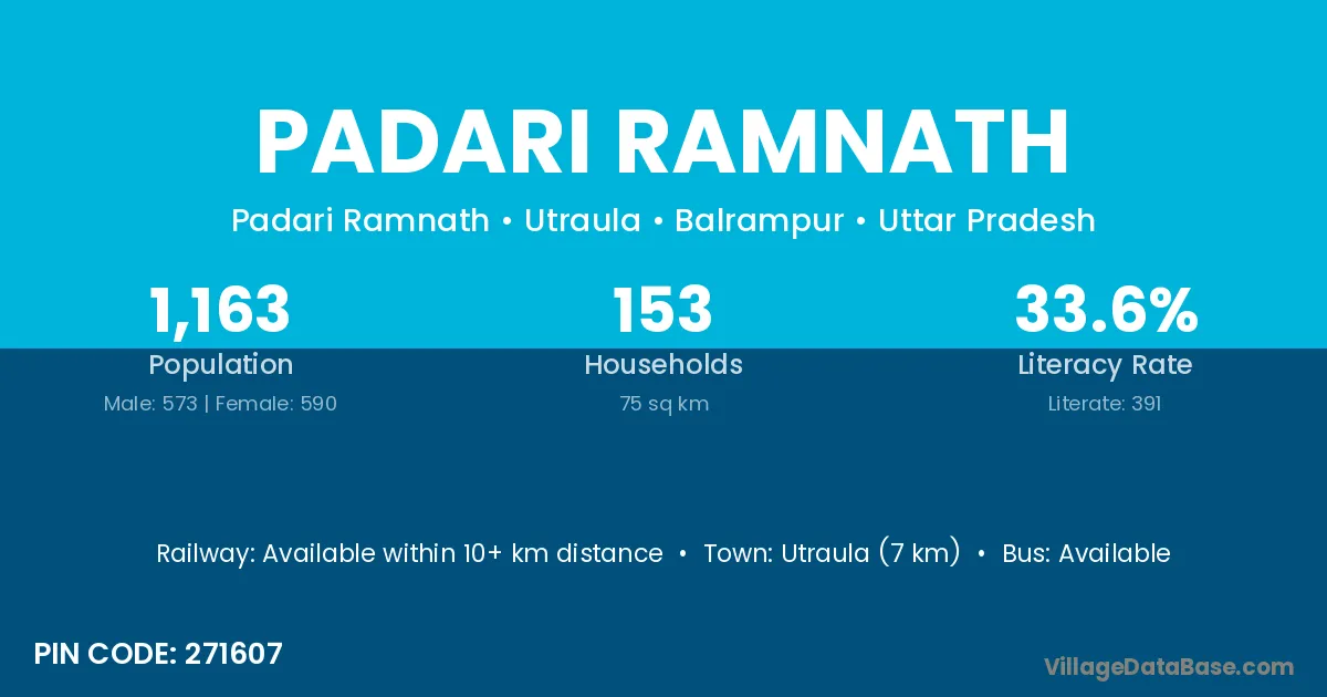 Utraula (7 km) is the nearest town to Padari Ramnath village for major economic activities and is located approximately 7 km away.