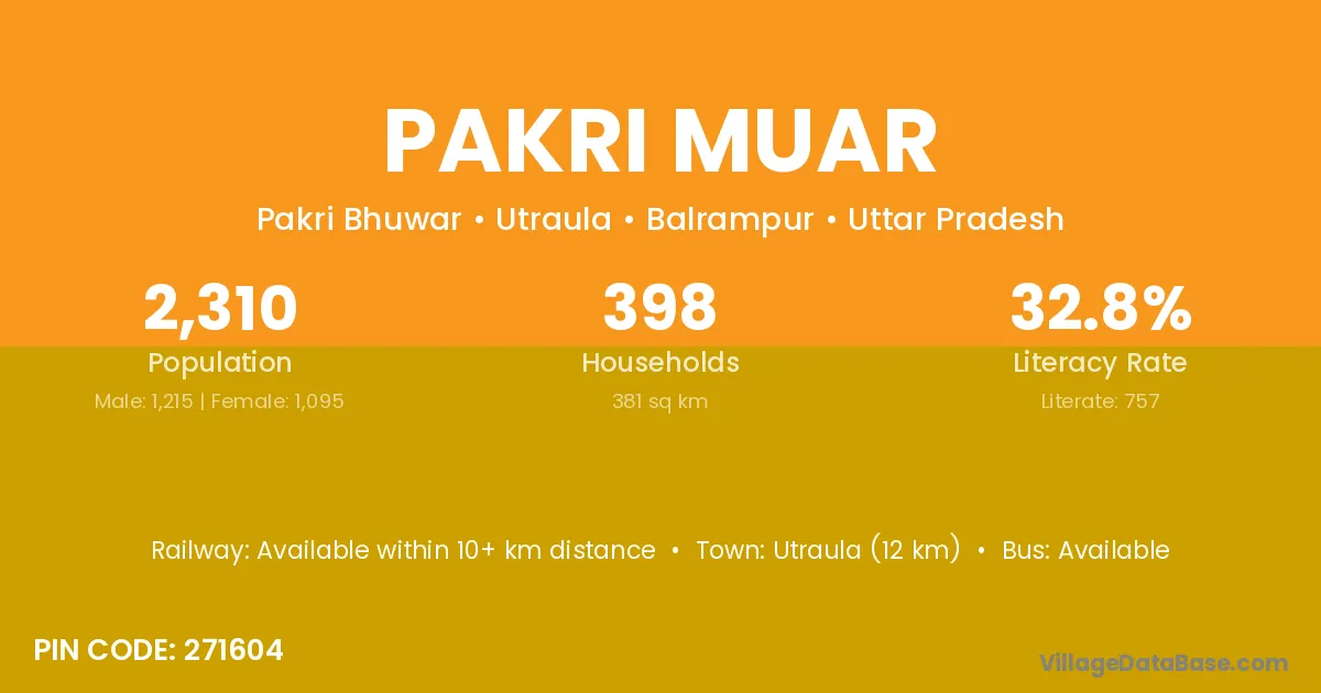 Utraula (12 km) is the nearest town to Pakri Muar village for major economic activities and is located approximately 12 km away.