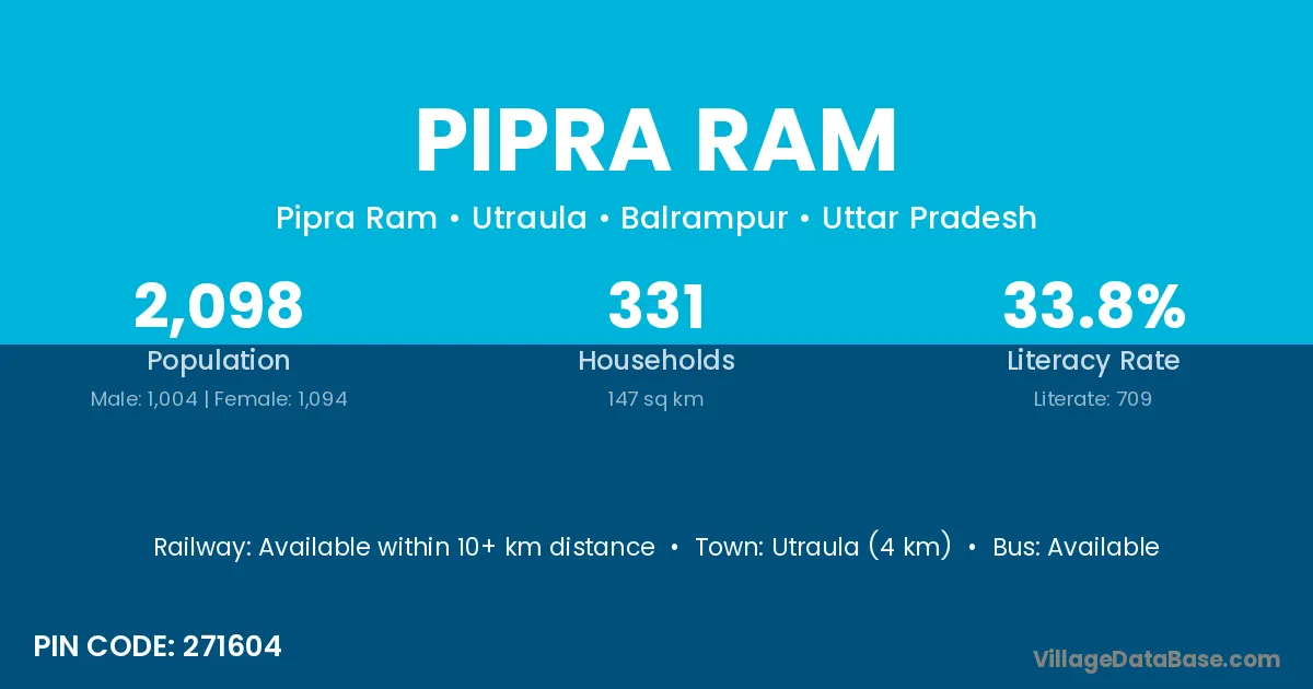 Utraula (4 km) is the nearest town to Pipra Ram village for major economic activities and is located approximately 4 km away.