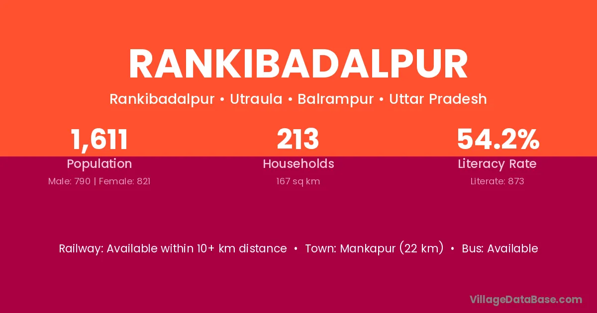 Mankapur (22 km) is the nearest town to Rankibadalpur village for major economic activities and is located approximately 22 km away.