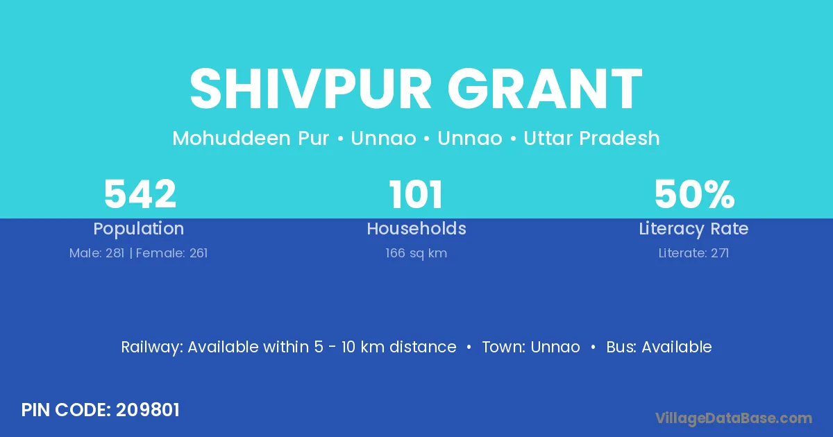 Utraula (8 km) is the nearest town to Shivpur Grant village for major economic activities and is located approximately 8 km away.