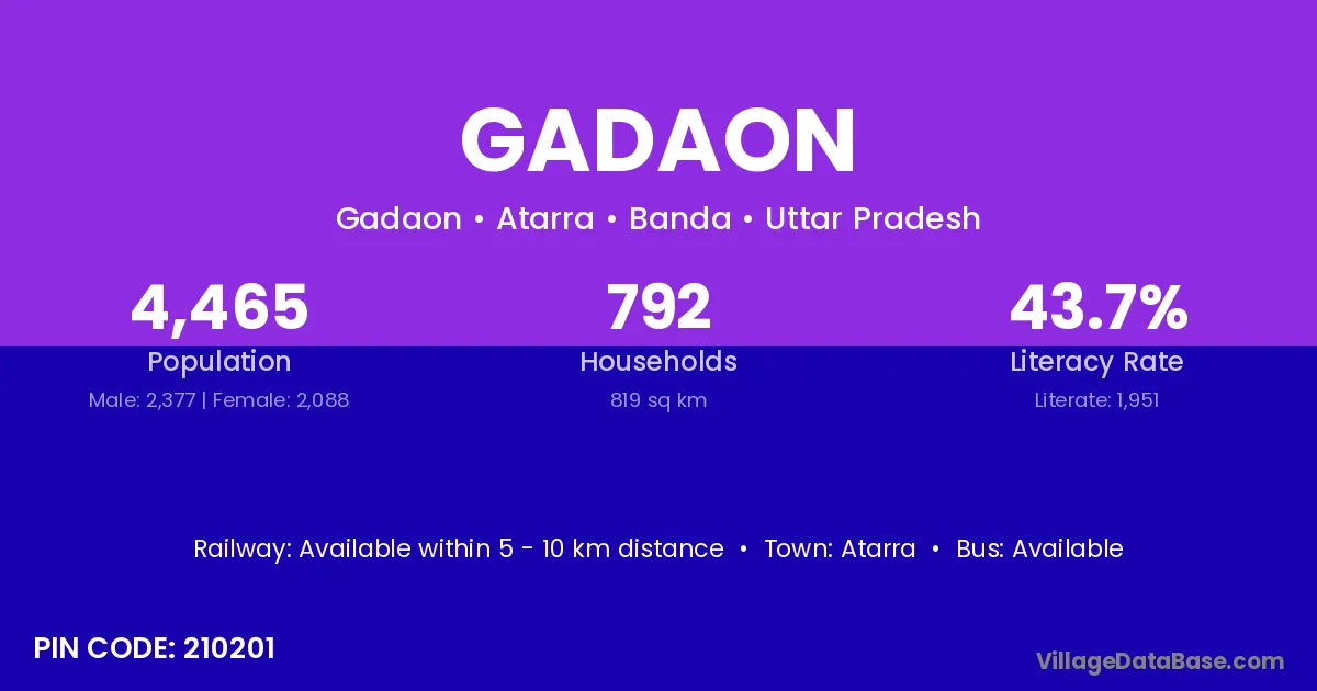 Gadaon village is located in the Atarra Tehsil of the Banda district in Uttar Pradesh .