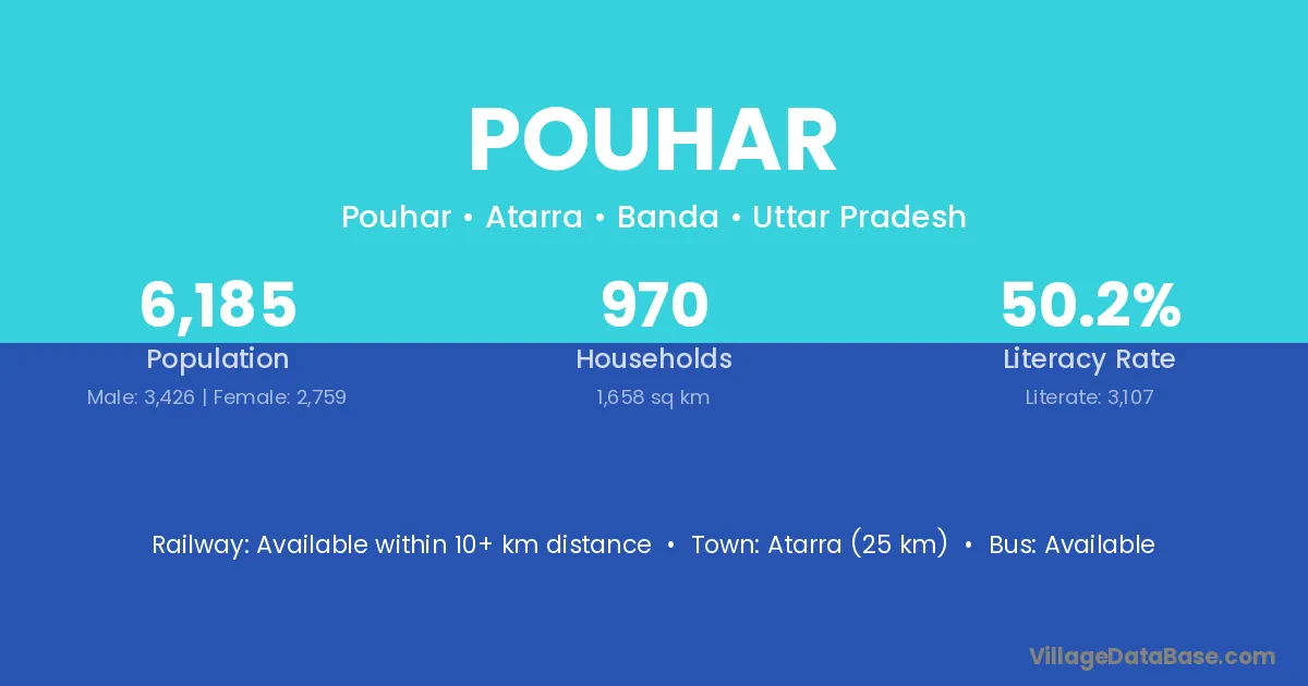 Atarra (25 km) is the nearest town to Pouhar village for major economic activities and is located approximately 25 km away.