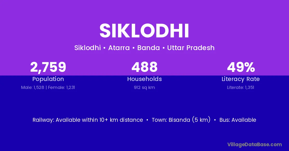 Siklodhi village is located in the Atarra Tehsil of the Banda district in Uttar Pradesh .