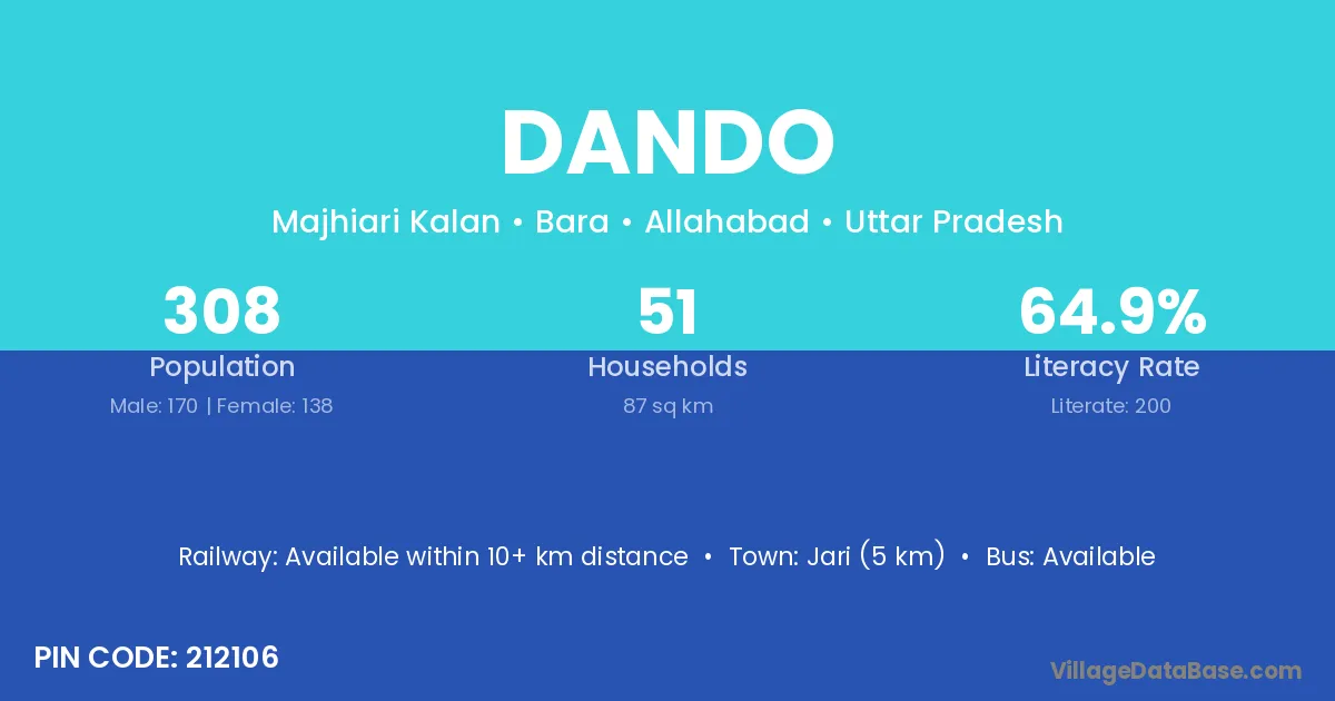 Fatehpur (55 km) is the nearest town to Dando village for major economic activities and is located approximately 55 km away.