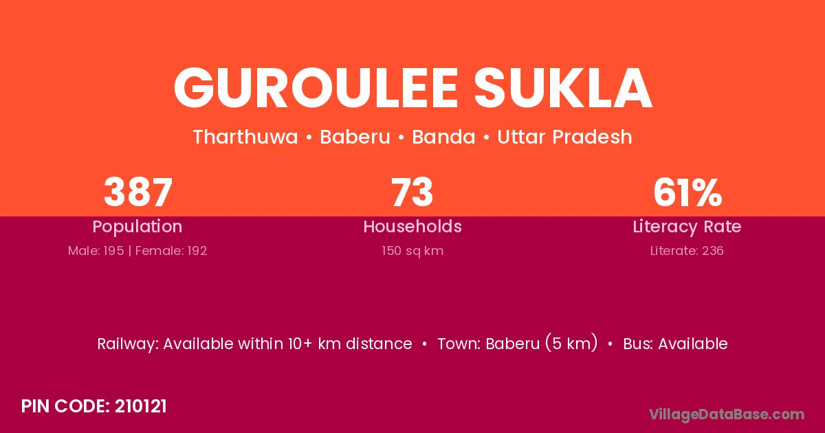Baberu (5 km) is the nearest town to Guroulee Sukla village for major economic activities and is located approximately 5 km away.