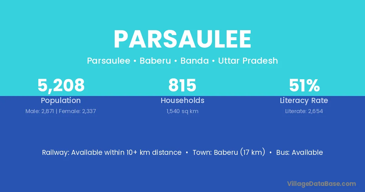 Baberu (17 km) is the nearest town to Parsaulee village for major economic activities and is located approximately 17 km away.