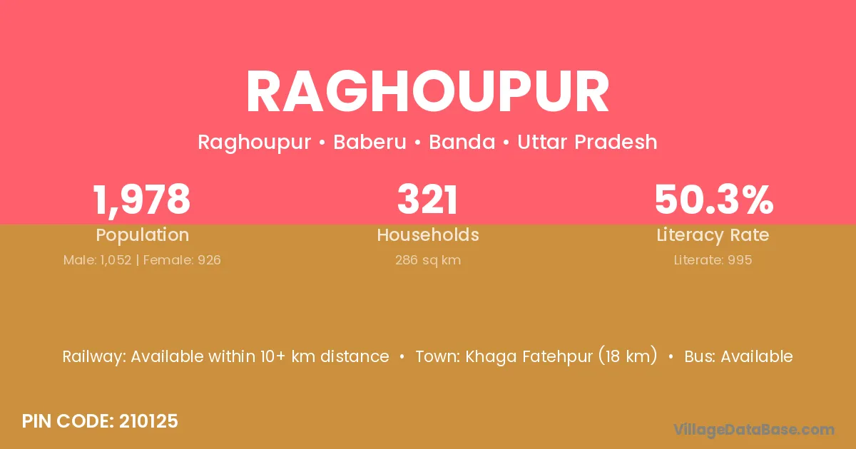 Khaga Fatehpur (18 km) is the nearest town to Raghoupur village for major economic activities and is located approximately 18 km away.