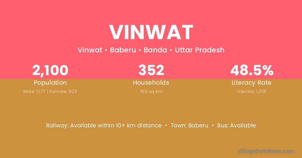 Vinwat village has a total population of 2,100 people, of which 1,177 are males and 923 are females.
