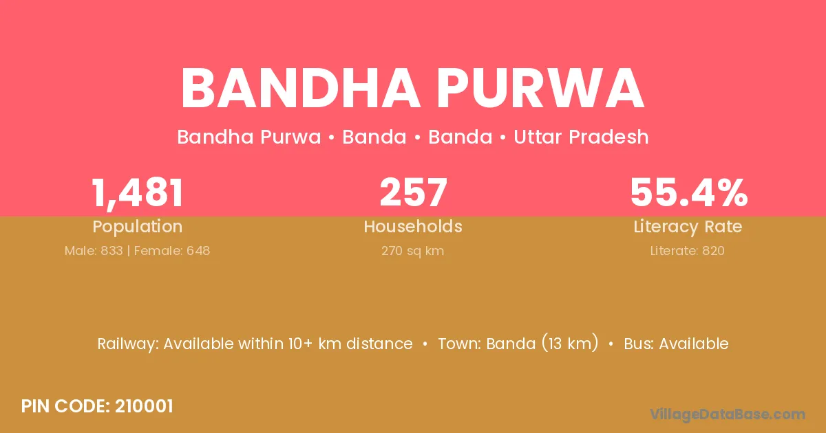 Bandha Purwa village has a total population of 1,481 people, of which 833 are males and 648 are females.