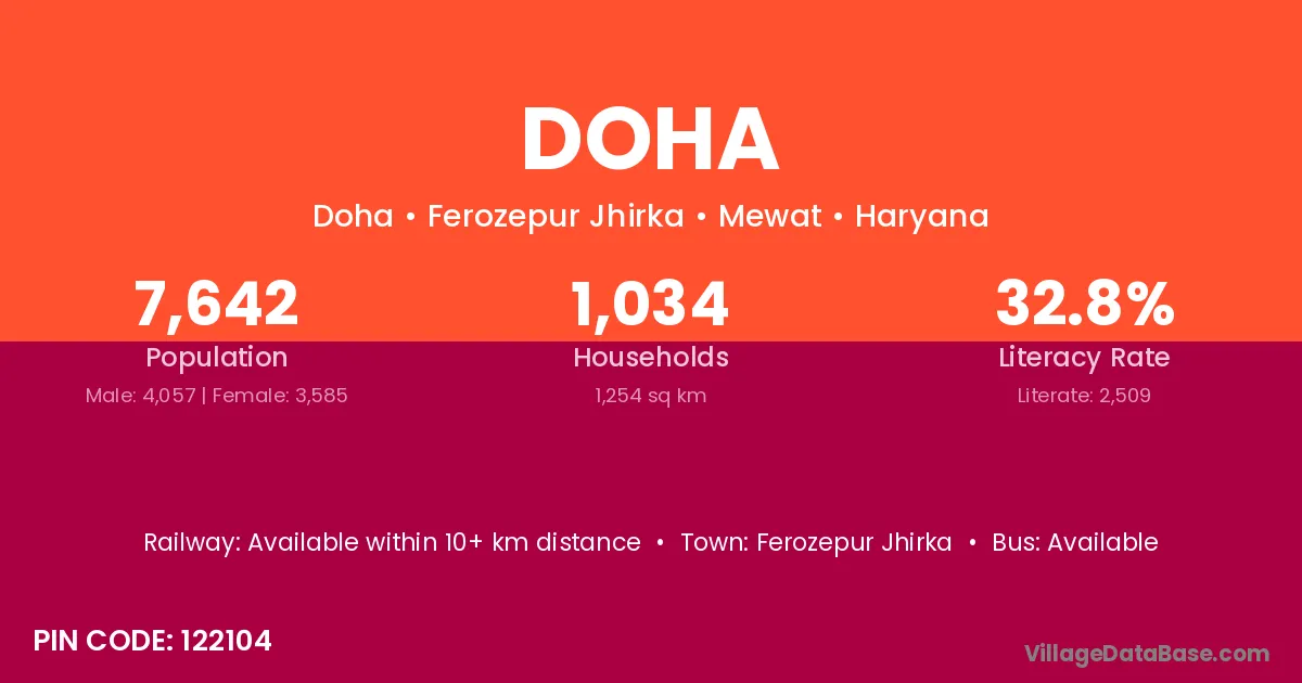 The literacy rate of Doha village is 50.44%. Male literacy stands at 60.72% and female literacy at 38.49%.
