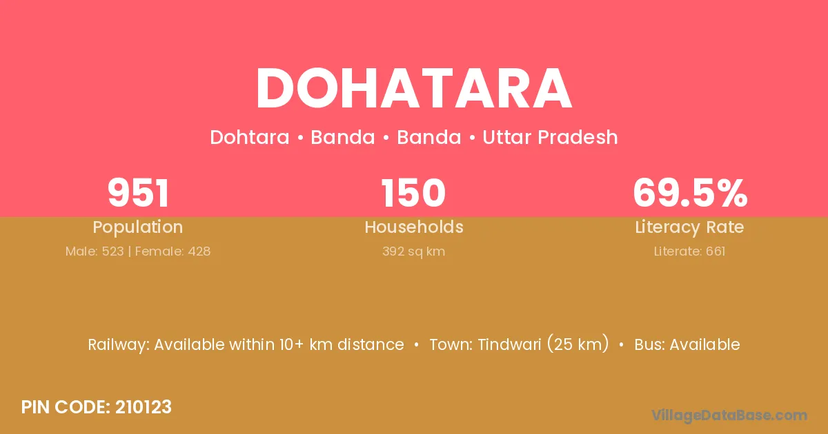 Dohatara village has a total population of 951 people, of which 523 are males and 428 are females.