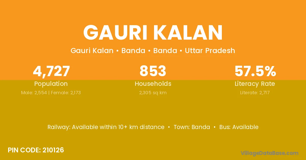 Banda is the nearest town to Gauri Kalan village for major economic activities