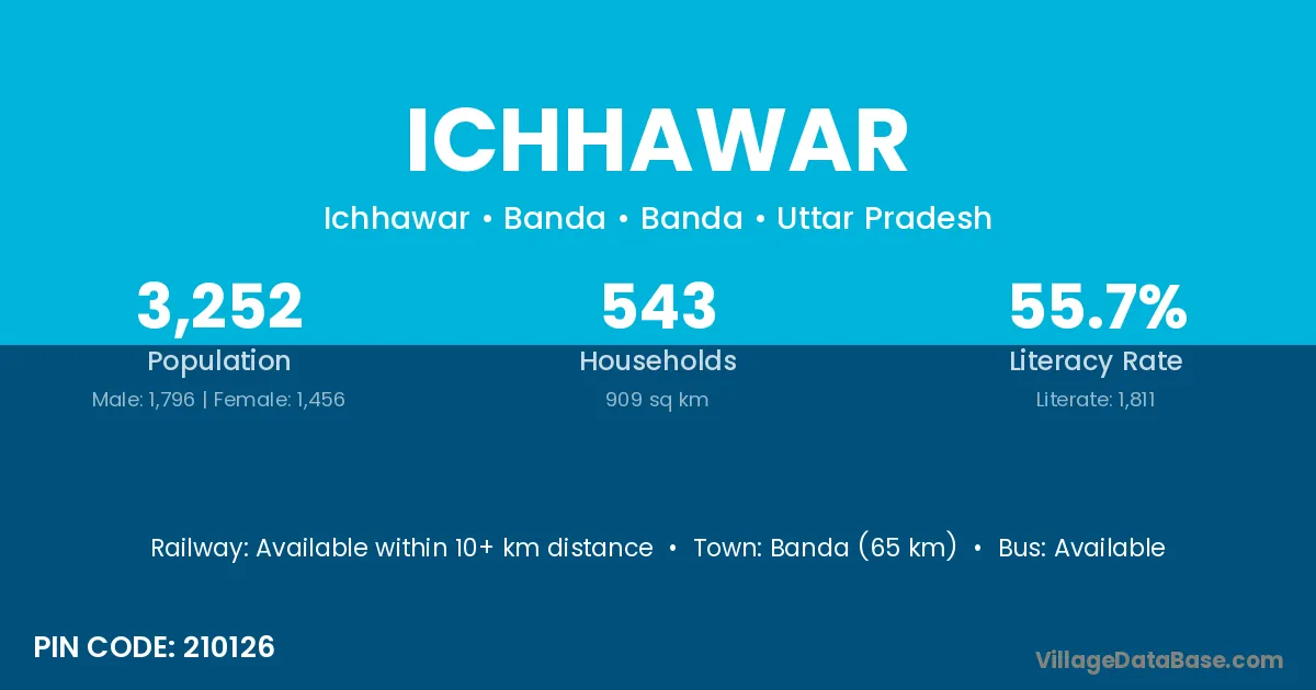 Banda (65 km) is the nearest town to Ichhawar village for major economic activities and is located approximately 65 km away.