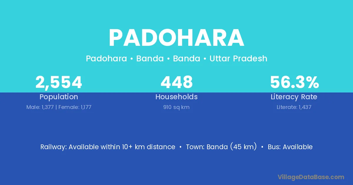 Banda (45 km) is the nearest town to Padohara village for major economic activities and is located approximately 45 km away.