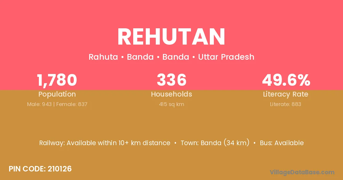 Banda (34 km) is the nearest town to Rehutan village for major economic activities and is located approximately 34 km away.