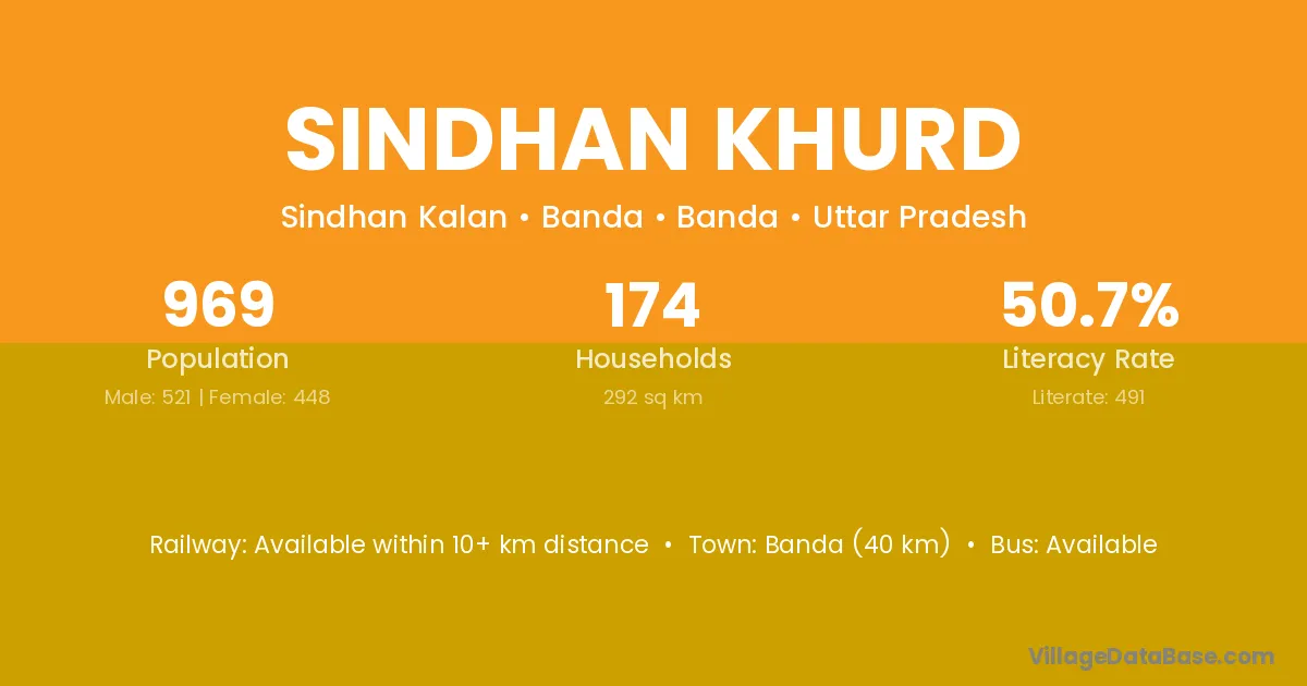 Banda (40 km) is the nearest town to Sindhan Khurd village for major economic activities and is located approximately 40 km away.