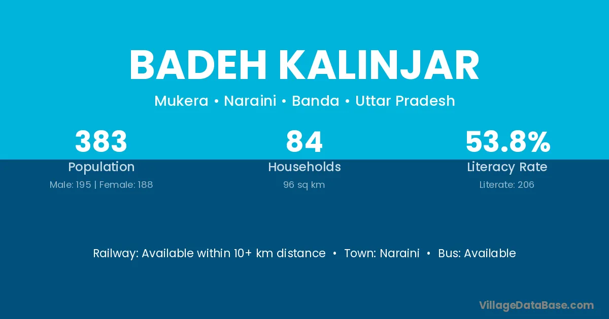 Badeh Kalinjar village has a total population of 383 people, of which 195 are males and 188 are females.