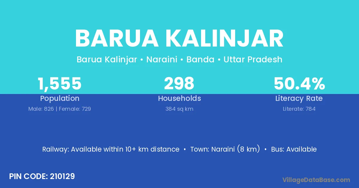 Naraini (8 km) is the nearest town to Barua Kalinjar village for major economic activities and is located approximately 8 km away.