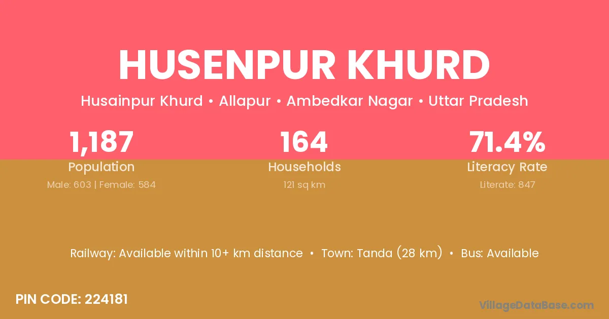 Husenpur Khurd village has a total population of 1,340 people, of which 716 are males and 624 are females.