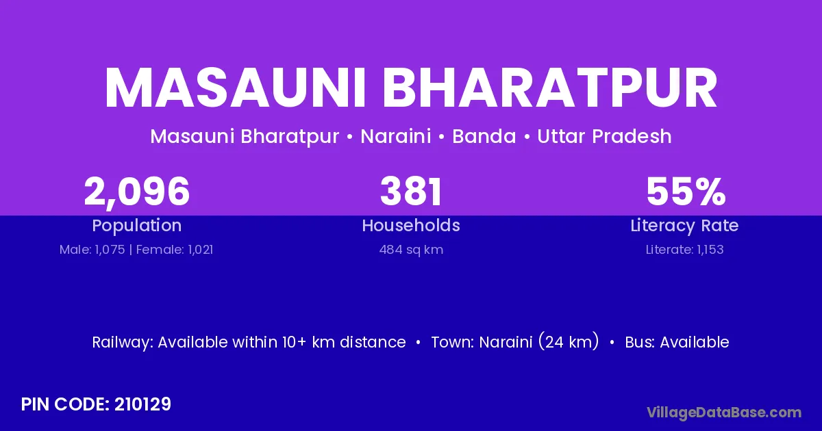 Naraini (24 km) is the nearest town to Masauni Bharatpur village for major economic activities and is located approximately 24 km away.