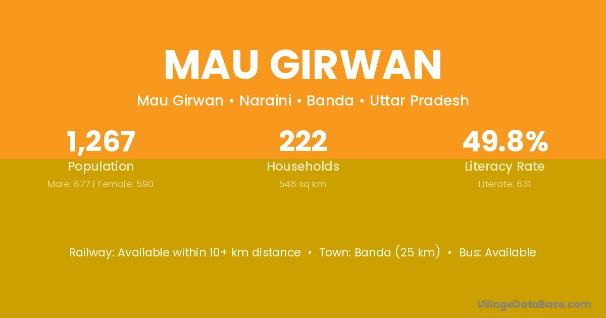 Banda (25 km) is the nearest town to Mau Girwan village for major economic activities and is located approximately 25 km away.