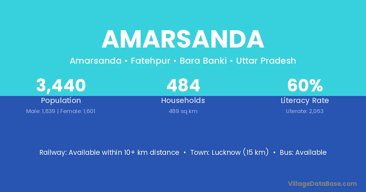 Lucknow (15 km) is the nearest town to Amarsanda village for major economic activities and is located approximately 15 km away.
