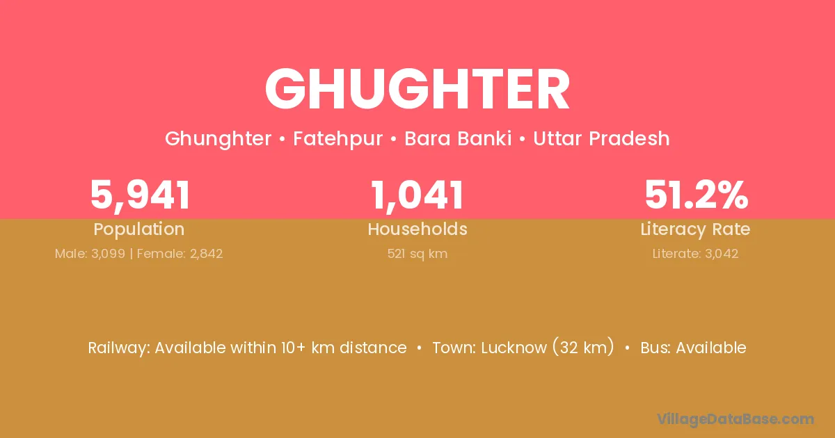 Ghughter village has a total population of 5,941 people, of which 3,099 are males and 2,842 are females.
